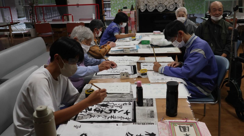 生徒の皆さんと、習字や作品作りを会話をしながら楽しみました。
