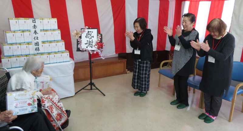 - 令和7年12月16日(火)に日赤奉仕団様よりティッシュペーパーをいただきました。