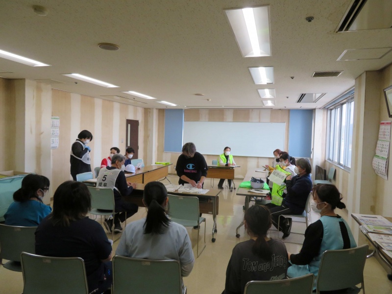 災害発生予想時を想定し、会議室に集合したうえで、各職種と動きを確認しました。