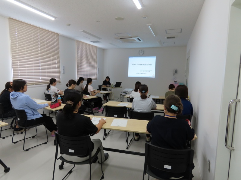 - 8月4日(月)に、ひまわり学園にて大垣市福祉部 障がい福祉課 障がい福祉グループの渡辺澄江主幹を講師にお招きし、「大垣市の障がい福祉について」や「障害者虐待防止法」「障害者虐待の現状」についてお話をしていただきました。