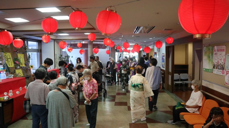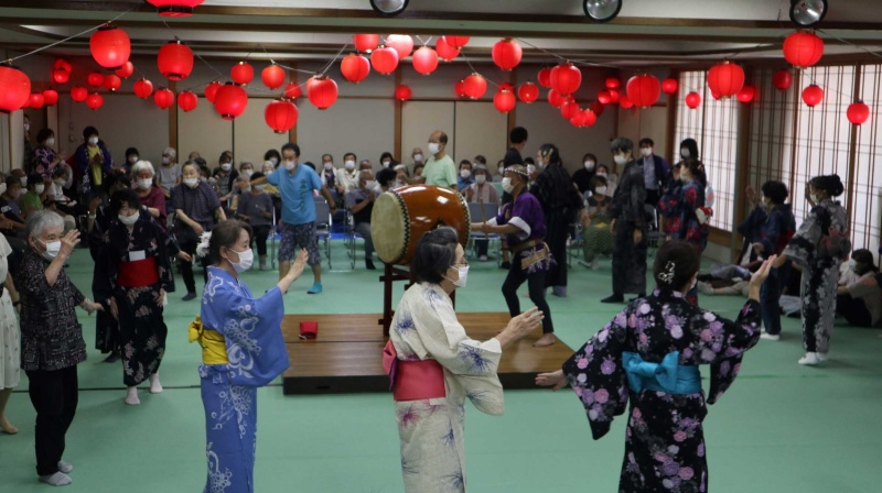 盆踊りの輪が、2重3重になる時もあり、地域の方々も、利用者様も皆で楽しむことができました。