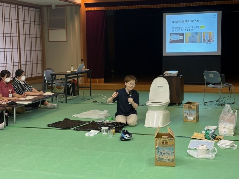 今回は、どんなときでも人にやさしいトイレ~トイレの中を検証しよう~と題し、清流の国ぎふ女性防災士会会長・伊藤三枝子先生より、ご講義いただきました。