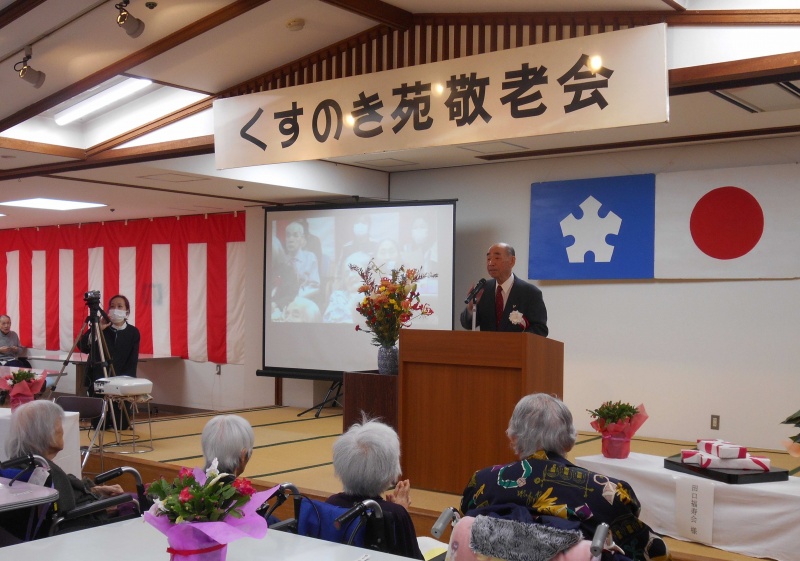 事業団事務局より北野茂樹理事長が、お祝いのご挨拶をされ、長年にわたり人生を歩まれてきた皆様に