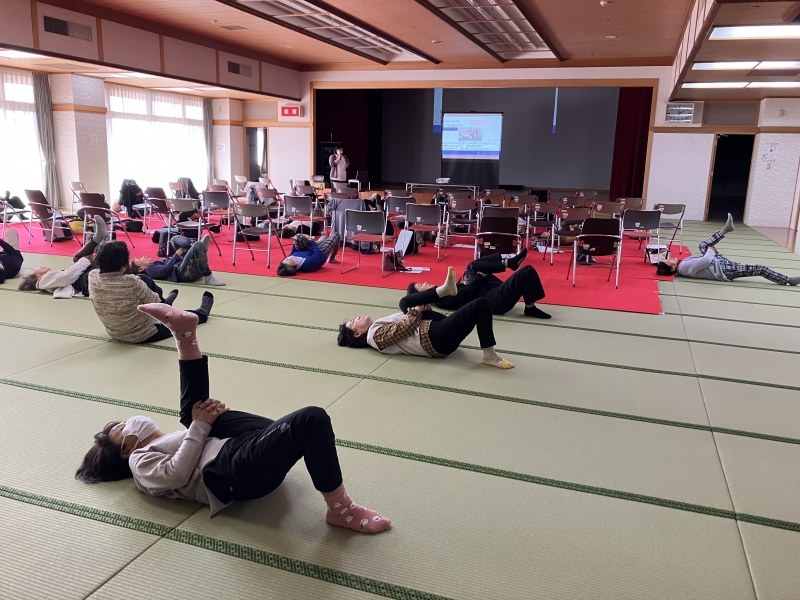 また運動することで、痛みを予防することができたり軽減することができるとのことで、腰痛予防の運動を教えていただき、実際に皆でやってみました。どれも簡単な運動で、家でできそうな運動ばかりでしたね(^^)/