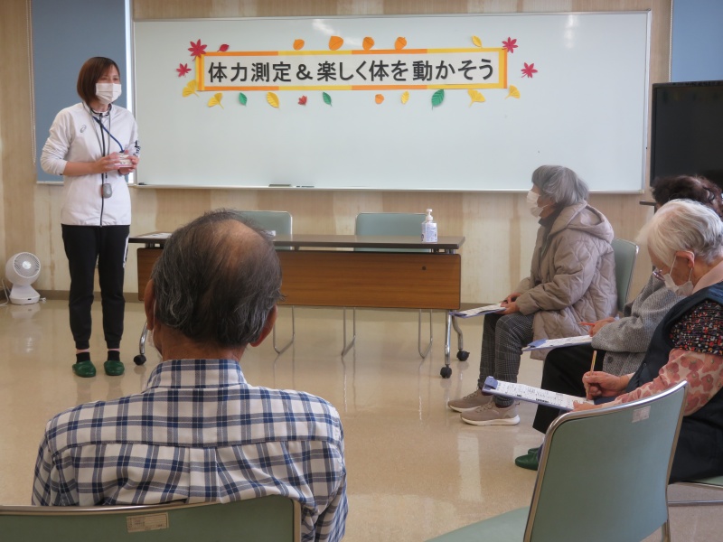 令和7年11月19日(水)に、保健センター理学療法士2名をお招きし、ふれあい講座『体力測定&楽しく体を動かそう』を開催しました。