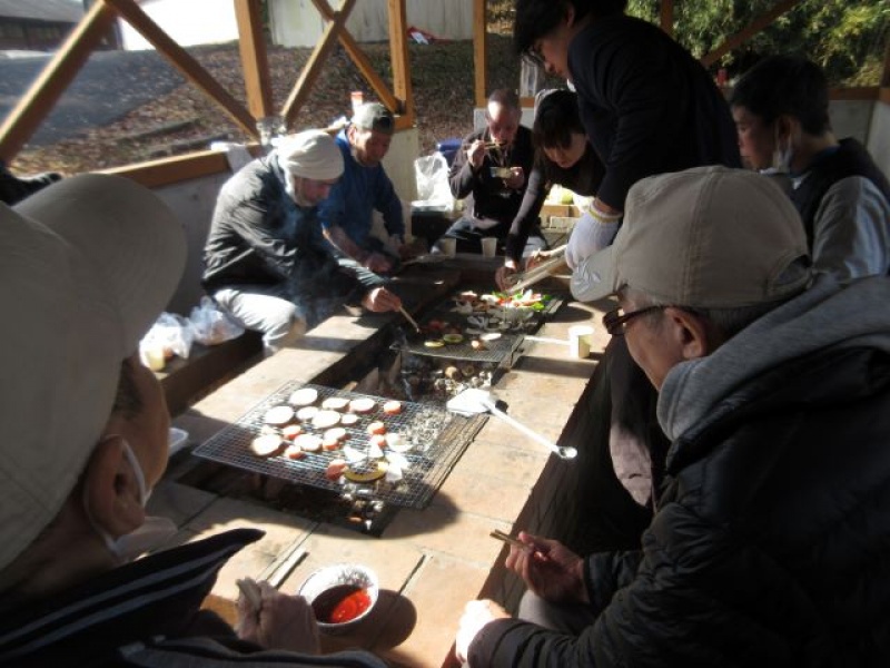 甘くてホクホク、お肉と野菜も焼き立てで美味しく、色づいた紅葉を眺めながら頬張り、笑顔のあふれる楽しいひと時でした。
