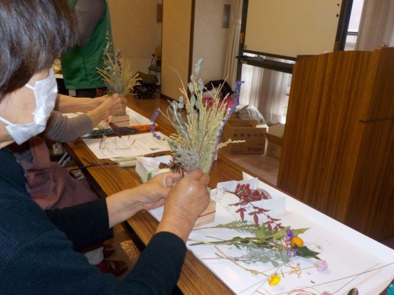 12月11日(木)にNPO法人岐阜県園芸福祉協会 西濃支部の皆さまを講師にお迎えして、介護予防教室『園芸で生活を楽しもう ~枡に入ったお正月飾りを作ろう~』を開催しました。
