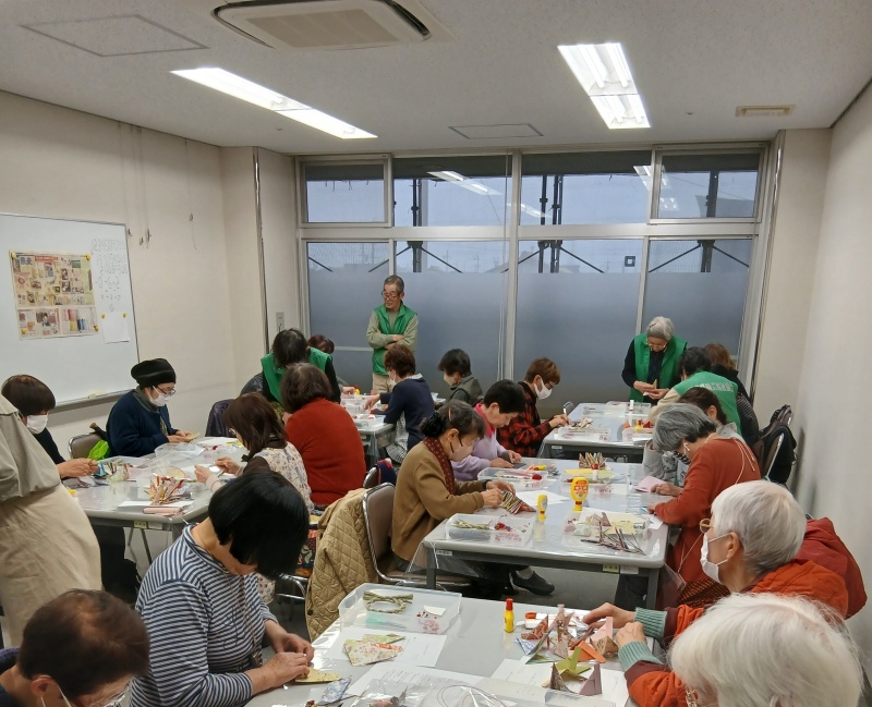 始めに脳トレを兼ねた16枚の折り紙を折る作業からでしたが、折り方や折る手順に皆様大変悩まれ、同席者の方と積極的な交流が自然と交わされていました。