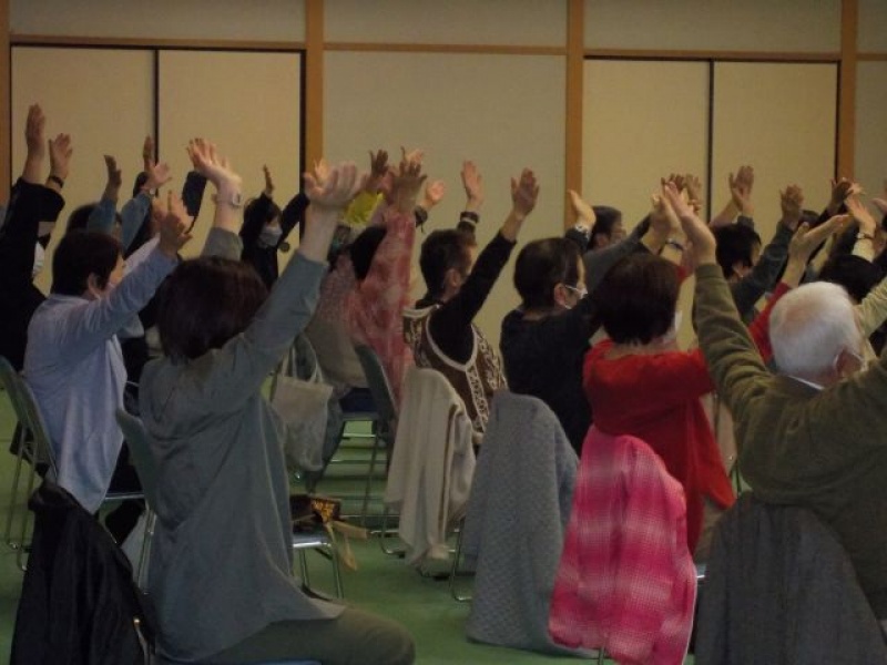 歌に合わせて指でグーパーや指折りなど、座ったままできる運動も行い、講師と参加者が一体感を得られる講座でした。